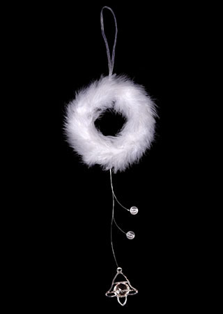 Závěsná dekorace z peří - Věneček se zdobením Bílý 32 x 15 cm