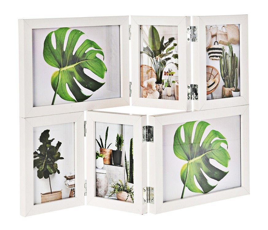 Oblíbený fotorámeček na více fotek v bílé barvě. Je vhodný pro umístění až šesti fotografií, 4 vertikálně a 2 horizontálně. Tento fotorámeček není vhodný na zeď, je ideální k postavení, díky možnosti libovolně jej ohýbat a natočit. Ať už s doplněnými fotkami nebo bez nich bude rámeček také skvělým dárkem. Dostupný je také v přírodním dřevěném provedení nebo v černé barvě.