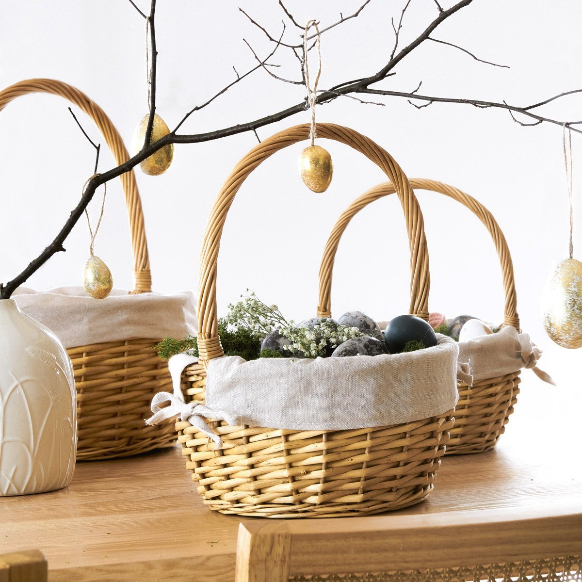 Velikonoční koš CARELLO je vyroben z proutí a přiložená podšívka je z bavlněné látky. Tyto materiály jsou trvanlivé a odolné vůči poškození, takže vám koš vydrží mnoho sezón ve skvělé kondici.