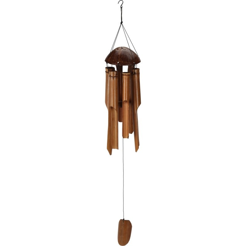 Tato zvonkohra je vyrobena ze 6 bambusových zvonkoher z kvalitního lakovaného bambusu (gigantochloa apus) a doplněna lakovaným kokosovým ořechem (cocos nucifera). S rozměry o průměru 15 cm a délkou 30 cm je dostatečně výrazná, aby zaujala, a přitom nenásilná, aby se hodila do jakéhokoliv interiéru, ať už na terasu, balkon nebo do pokoje.