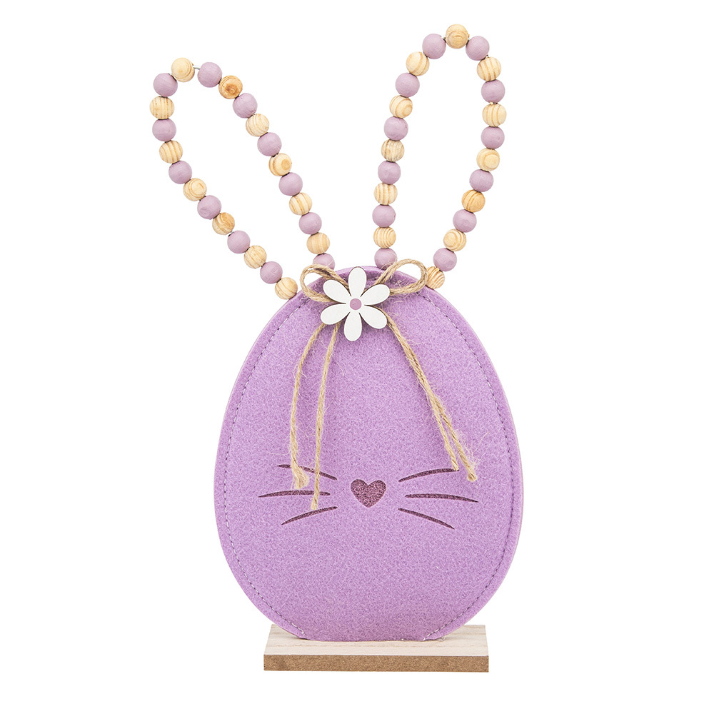 PLSTĚNÁ FIGURKA ZAJÍC 16X5X32CM FIALOVÉ KORÁLKY