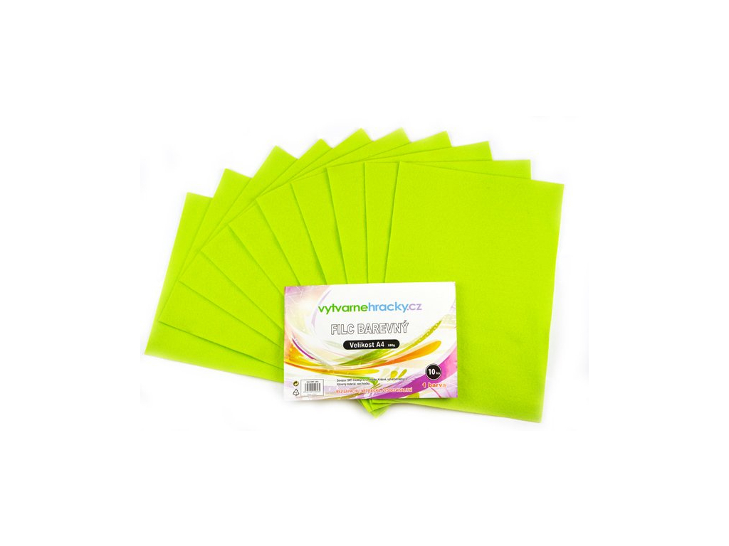 Filc - 10 ks, Světle zelený, A4, 180 g