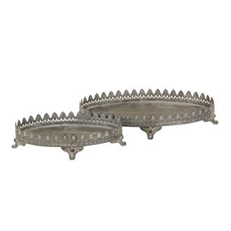 Sada dekoračních podnosů.Sada obsahuje dva podnosy.Malý podnos má rozměry : 19 x 12 cm, výška 4,5 cm.Velký podnos má rozměry : 25 x 15 cm, výška 5 cm.Materiál : kov. číst celé