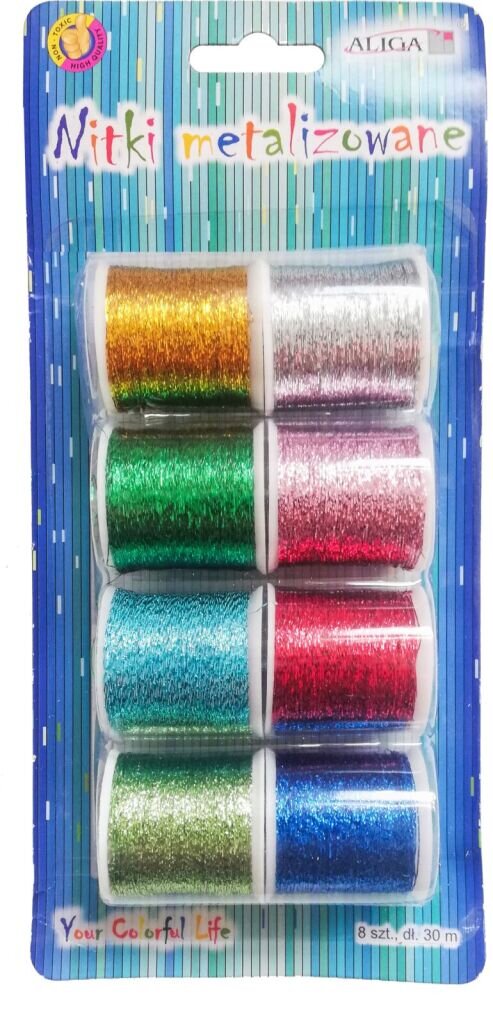 ALIGA niť DA-5146 je ideální volbou pro všechny, kdo chtějí s nitěmi vytvářet originální výrazné doplňky, dekorace nebo zdobení oděvů a dalších textilií. Tento set obsahuje 30 metrů kvalitní barevné metalické nitě, které jsou pevné a zároveň pružné, takže se s nimi dobře pracuje i při náročnějších šicích úkolech.