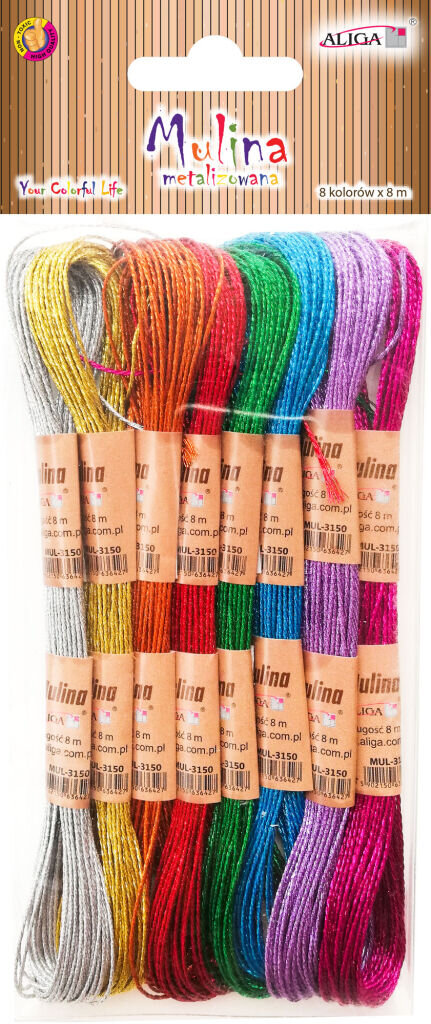 ALIGA bavlnka MUL-3150 je sada 8 bavlněných provázků Mulina v metalických tónech, které jsou ideální pro různé kreativní činnosti. Každá bavlnka má délku 8 metrů, což poskytuje dostatek materiálu pro rozsáhlejší projekty nebo více menších výrobků. Sada obsahuje 8 barevných odstínů metalických bavlnek, které krásně zachytí světlo a dodají vašemu dílu zajímavý šmrnc.