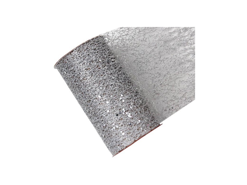 Stuha síť s glittrem stříbrná, 15cm x 2,7m