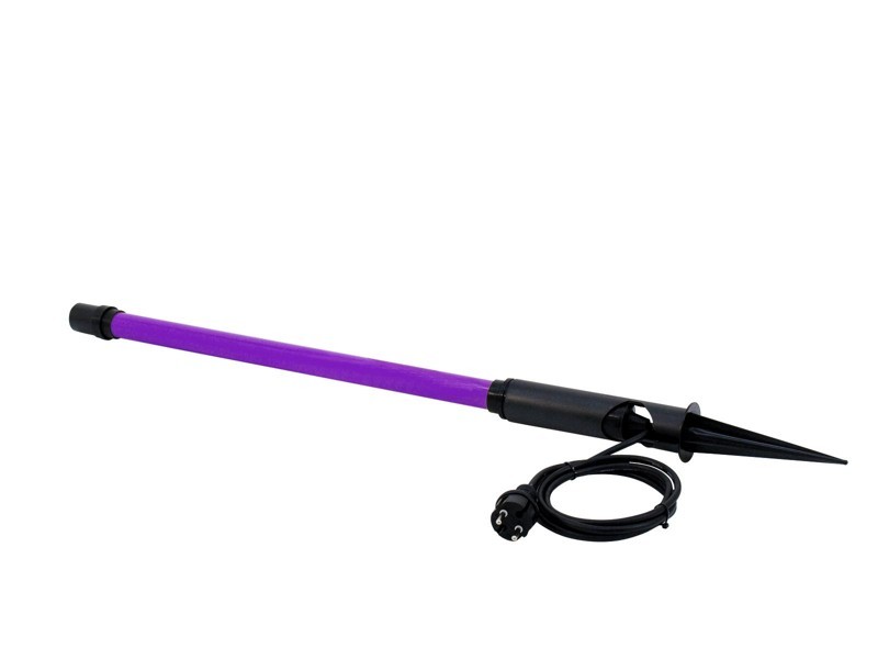 Venkovní neónová tyč T8, 18 W, 70 cm, fialová L. Výjimečné osvětlení pro oslnivou atmosféru. Určeno pro venkovní použití. Délka tyče k dostání: 70 cm nebo 134 cm. K dostání v 9 různých barvách a v UV verzi. S bodcem pro zasunutí do země - jednoduchá instalace. Prosté připojení pomocí napájecího kabelu a Euro zástrčky. Dodáváno v extrémně stabilním, luxusním obalu.