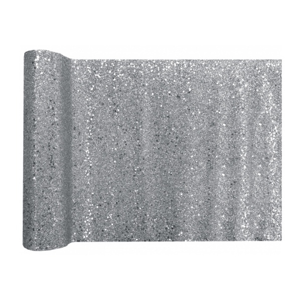 Šerpa 28 cm x 3 m stříbrná s glitry