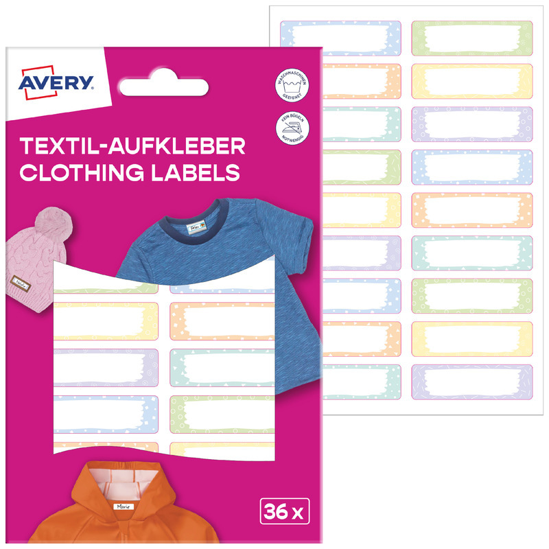 Naklejki na tekstylia 45x13mm op. 36szt. pastelowe, Avery