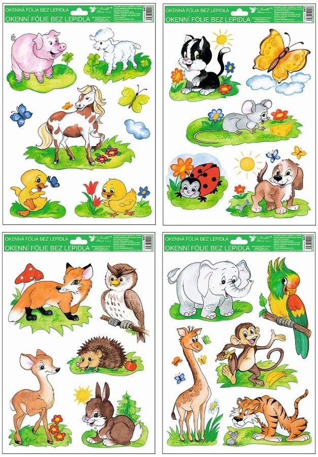 dekorace okenní ZVÍŘÁTKA 33,5x26cm, ruč,mal., fólie (1 Ks)