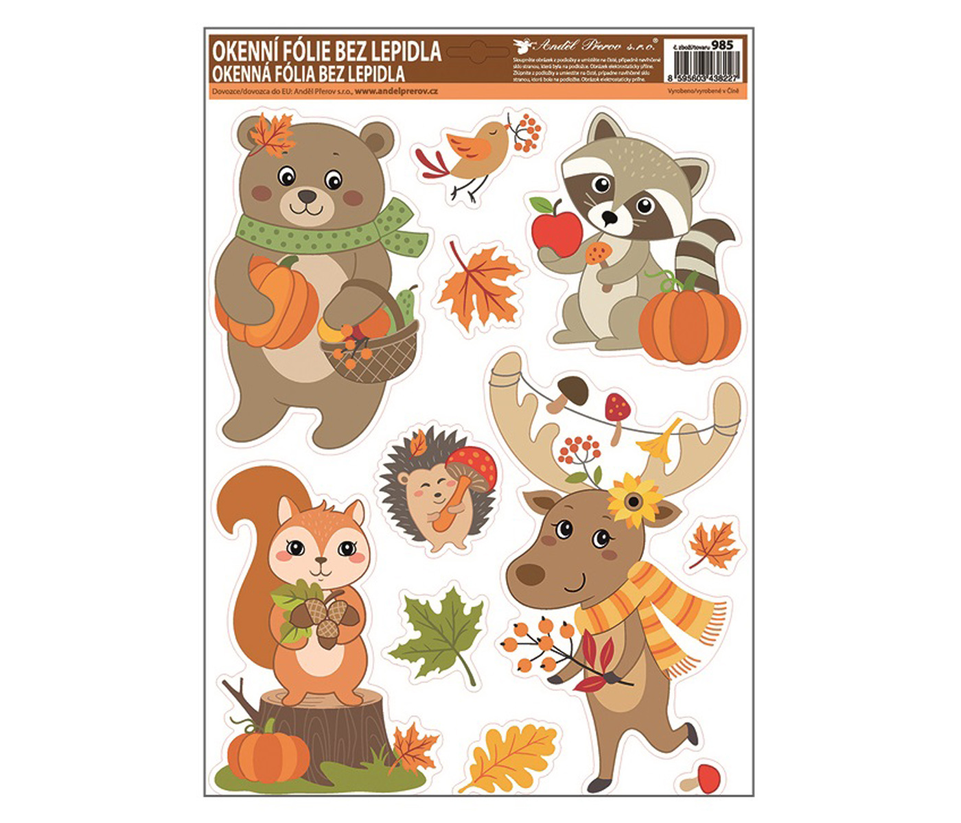 Tato fólie obsahuje směs půvabných podzimních zvířátek, která krásně rozzáří vaše okna a zrcadla. Rozměr 42 x 30 cm je ideální pro různé velikosti oken a povrchů. Fólie zlepšuje estetiku interiéru a zároveň snadno oživí vaše prostory kdykoliv během podzimních měsíců.