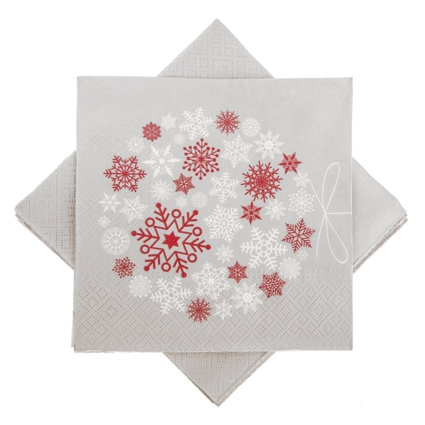 Rodinná večeře i slavnostní oběd o svátcích a v zimním období se neobejde bez hezky prostřeného stolu. Pak se vám bude hodit krásný papírový ubrousek s tištěným vzorem sněhových vloček, které tvoří baňku. Stačí jej položit pod talíře, příbory, nebo si můžete dát práci a složíte si jej do nějakého hezkého tvaru.