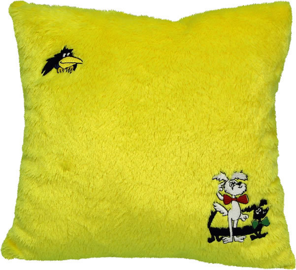 Štaflíka a Špagetku děti jistě znají z věčerníčku. Tento polštářek je ideální právě pro večerní polehávání a koukání se na tuto pohádku (i když já jsem spíše zastánce čtené verze, doporučuji tedy i knížku o Štaflíkovi a Špagetkovi z nakladatelství Albatros). Na rozdíl od batůžku, který je taky žlutý je na obrázku také společnice obou pejsků a to zatrolená vrána, která jim provádí samé naschvály lumpárny a neplechy. Dobrou noc :-)