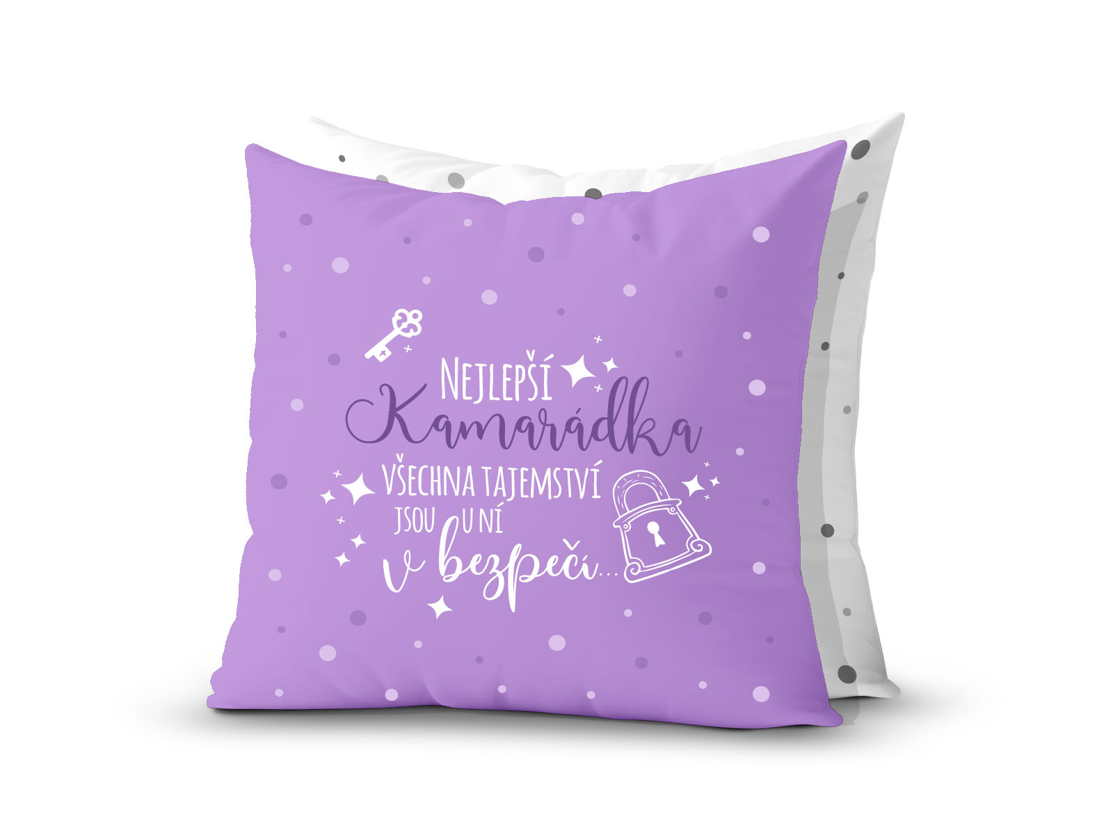 Dárkový polštář s věnováním „nejlepší kamarádka - všechna tajemství jsou u ní v bezpečí“.
