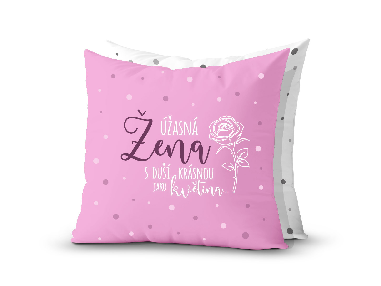 Dárkový polštář s věnováním „úžasná žena s duší krásnou jako květina“.
