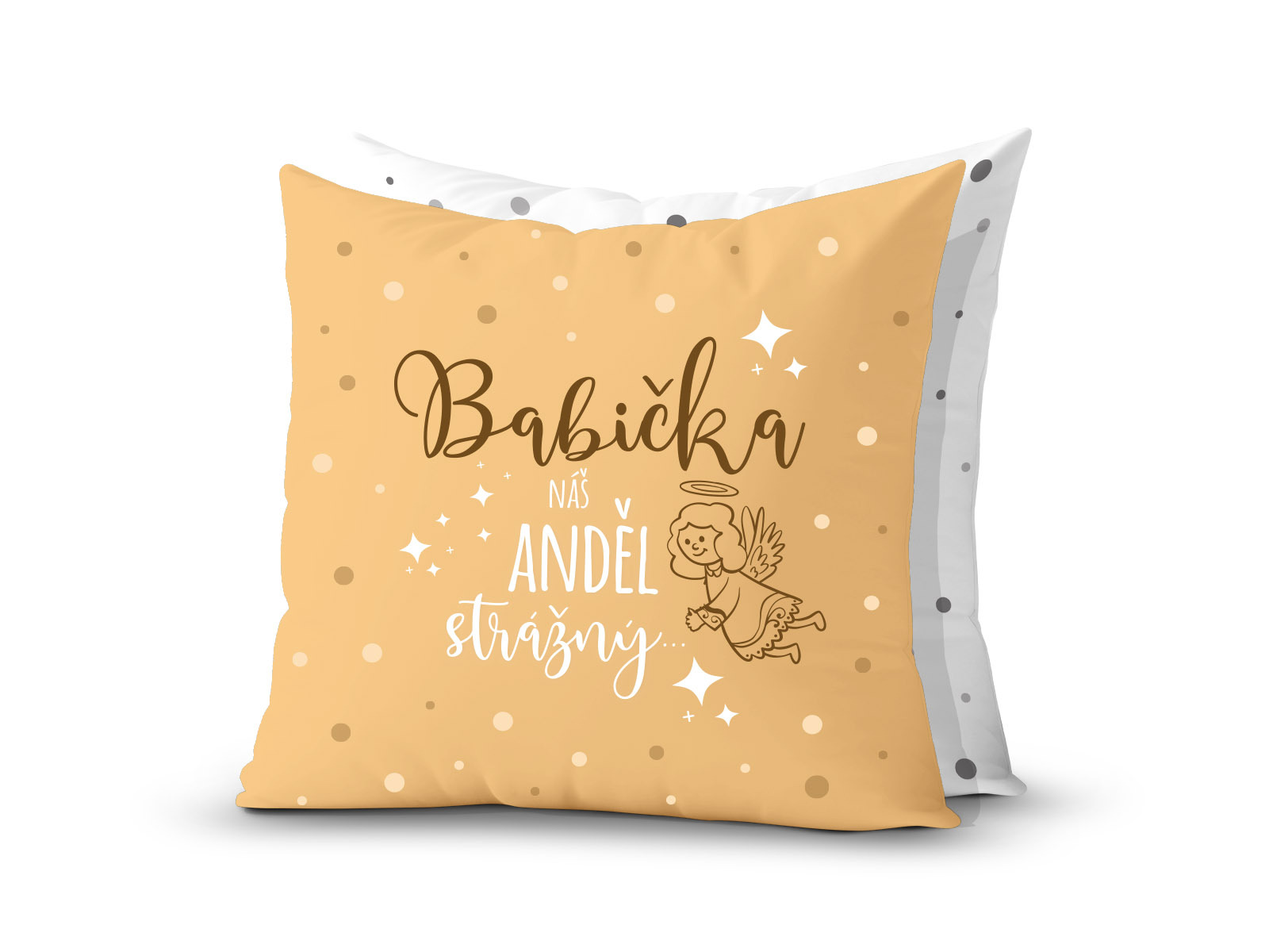 Dárkový polštář s věnováním „babička - náš anděl strážný“.