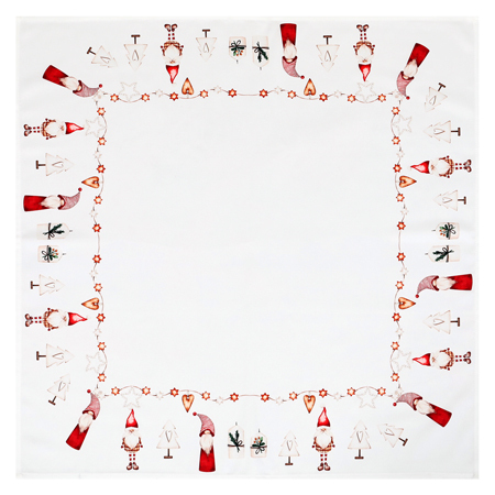 Ubrus bílý - vánoční, okraje se skřítky, 100% polyester, 80 x 80 cm.