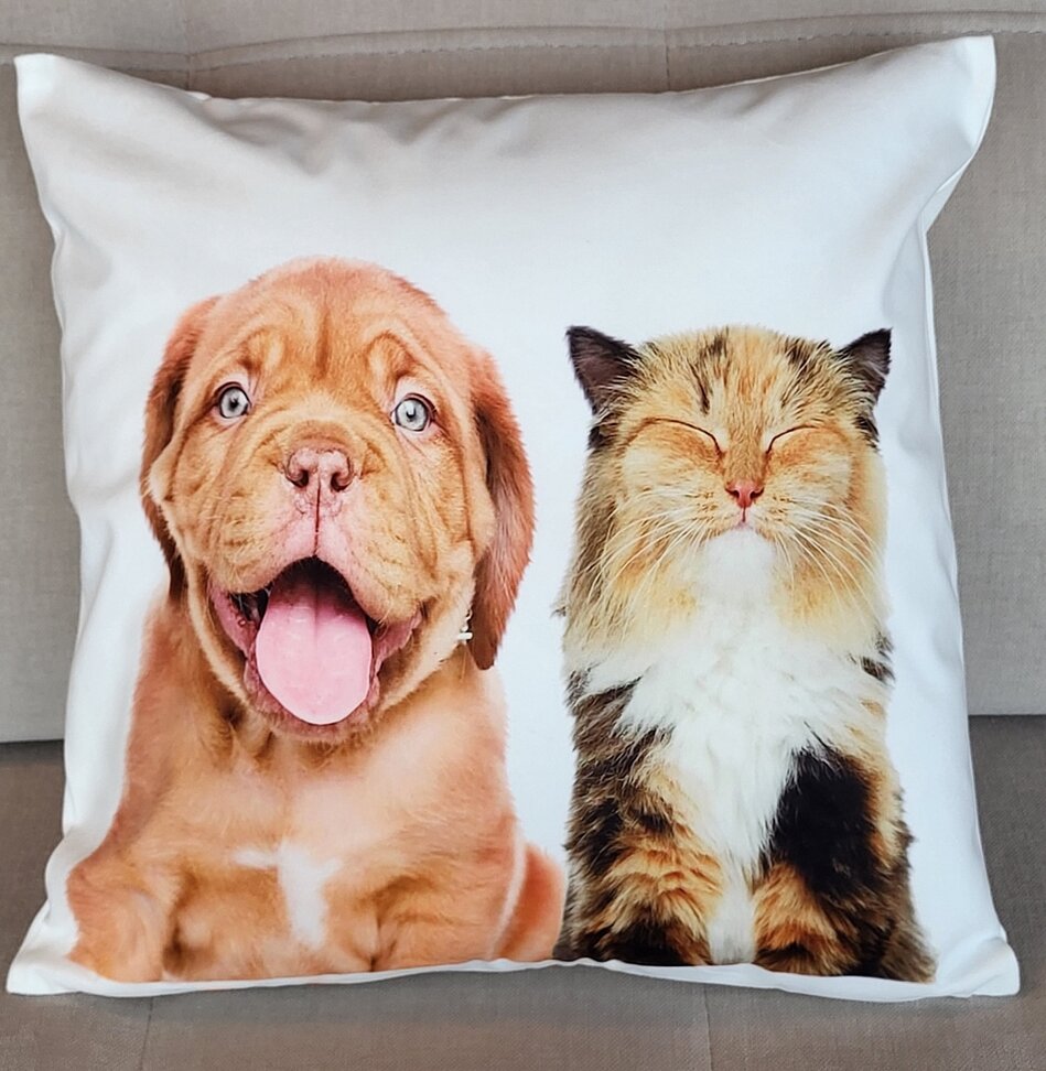 Krásný mikrovláknový polštář s originálním motivem psa a kočky. Polštář je ideální celoroční dekorace do Vašeho bytu.