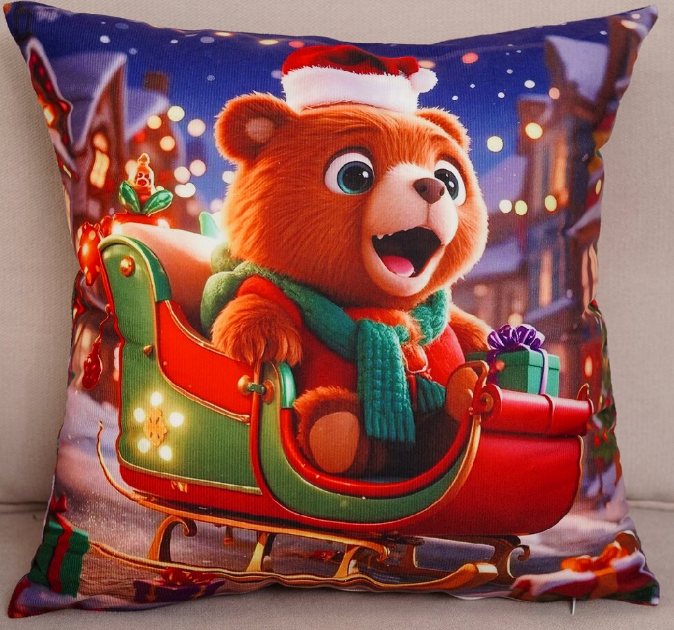 Vánoční polštář MEDVÍDEK NA SANÍCH 40x40 cm Mybesthome