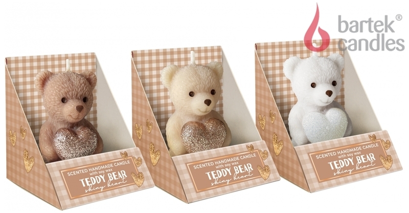 Świeca, figurka Teddy Bear Shiny Hearts 7 cm, Bartek Candles