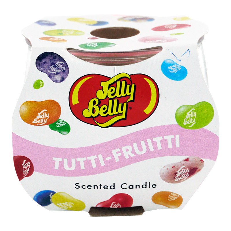 Jelly Belly - Tutti Frutti - neobvyklá americká svíčka - 85Gr Jelly Belly je esenciální vonná svíčka s originálními vůněmi po sladkých želatinových fazolkách. Tato svíčka má vůni Tutti Frutti (mix ovoce). Svíčka je sladká a přesto svěží a ovocná.Balení ve skle 85Gr - nenechávejte hořet bez dozoru