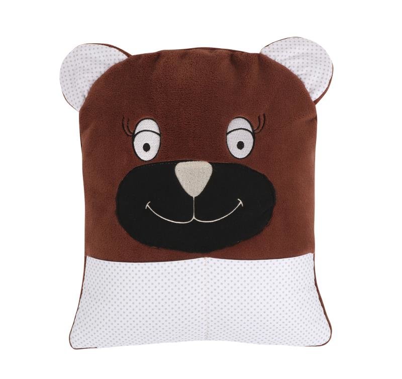 Polštářek z materiálu korall micro (100% polyester, praní na 30°C) s motivem zvířátka. Polštářek má v dolní části zip a uvnitř je samostatná výplň (praní na 30°C). Na přední straně jsou dvě malé kapsičky, kam lze schovat kapesníček nebo dětské poklady. Svým tvarem je vhodný jako malý polštářek na spaní nebo jako dárek pro každou příležitost.