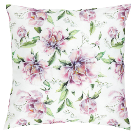 Polštář s výplní, samet. Motiv pivoňky. 45x45 cm. Bílý.