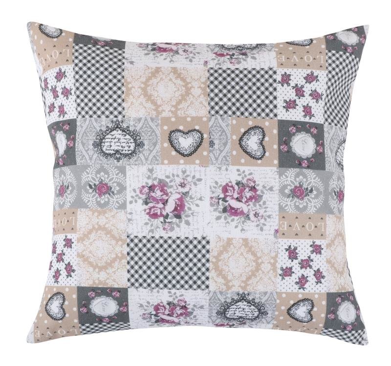 Polštářek DITA - patchwork love - šedá, béžová, vínová - 45x45 cm