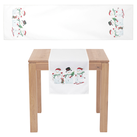 Běhoun s vánočním motivem - sněhuláci, 40x150 cm,100 % polyester.