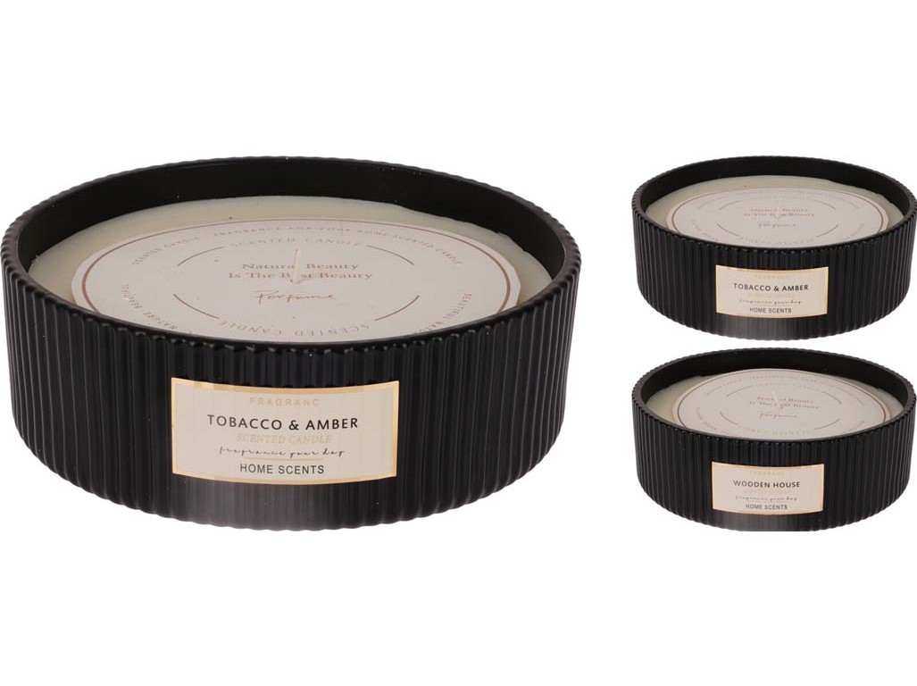 Svíčka ve skle 178x60mm rýhovaná vonná mix, černá
