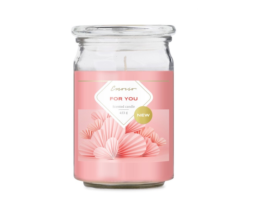 Emocio Sklo 93x142 mm se skleněným víčkem For You, růžová vonná svíčka