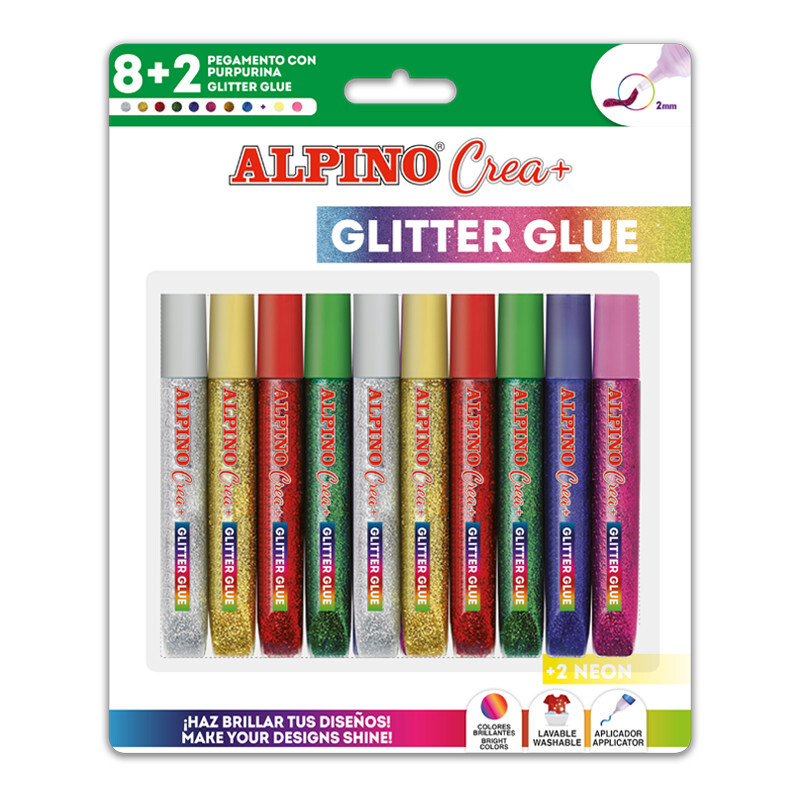 Alpino Crea třpytivé lepidlo 10ks - základní a neonové barvyPopis: obsahuje 8 barev + 2 neonové třpytivého lepidla na zdobení, hrot tlustý 2mm, s aplikátoremIdeální pro psaní textů a vytváření malých detailů. Naneste přímo na podklad, který se má ozdobit. Nechte asi 30 minut schnout. Po ukončení práce zavřete víčko. Je to dokonalý dekorační materiál pro děti i dospělé k dekoraci různých typů povrchů. Nechte své výtvory zářit 10 jasnými barvami. Pratelné.Upozornění: Nevhodné pro děti do 3 let. Obsahuje malé části, které by mohly způsobit nebezpečí udušení při spolknutí. Toto balení si uschovejte pro budoucí použití.