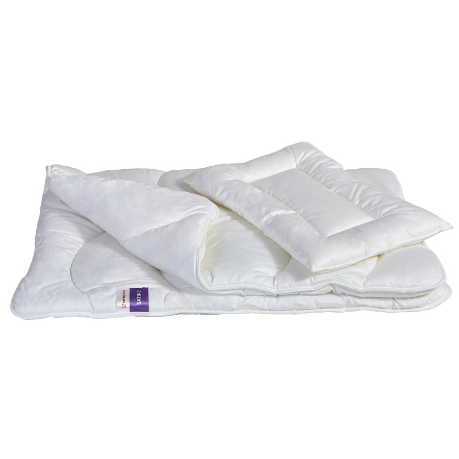 Peřinka 100 x 135 cm a polštářek 40 x 60 cm.Nadýchaná a zároveň lehoučká antialergenní peřinka a polštářek se saténovým potahem splňují přísné bezpečnostní normy, které potvrzuje certifikát Öko-Tex třídy I. Vlákna jsou potažena vrstvou silikonu, která je zanechává více nadýchaná a omezuje jejich vzájemné tření. Povrch přikrývky je 100% bavlny upravené do saténu, které je velmi příjemný na dotek a šetrné k citlivé dětské pokožce. Univerzální peřinka - jednovrstvá peřinka pro celý rok.ÚDRŽBAPraní v pračce na 60°C.CERTIFIKÁTYÖko-Tex třídy I.Výrobek pro děti od 0 do 4 let.SLOŽENÍMateriál: 100% bavlna (satén).Výplň: 100% spirálové polyesterové duté vlákno s přídavkem silikonu (HCS).