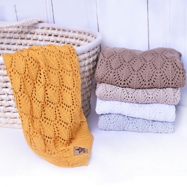 Luxusní bavlněná háčkovaná deka, dečka. ažurková LOVE, 75x95cm - hořčicová