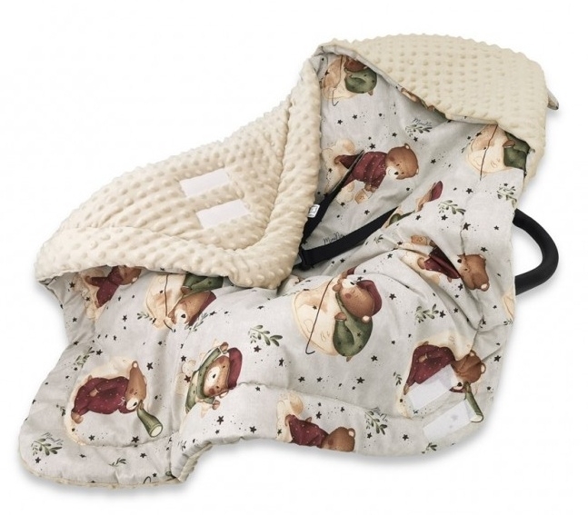 Oteplená zavin. deka s kapucí minky+bavlna, 90 x 90 cm, Teddy and Moon - béžová