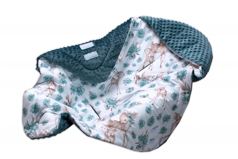 Baby Nellys Oteplená zavin. deka s kapucí minky+bavlna, 90 x 90 cm, Srnka a růže - mátová