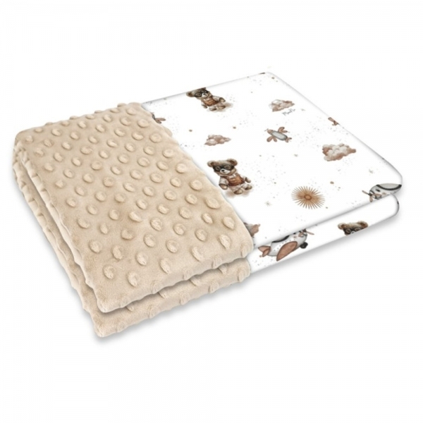 Oboustranná deka, Bavlna/Minky 100 x 75 cm, Méďa pilot - bílá, béžová