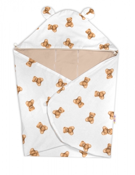 Dětská zavinovačka/deka do kočárku a autosedačky s kapucí - 90x90 cm, 100% bavlna.
