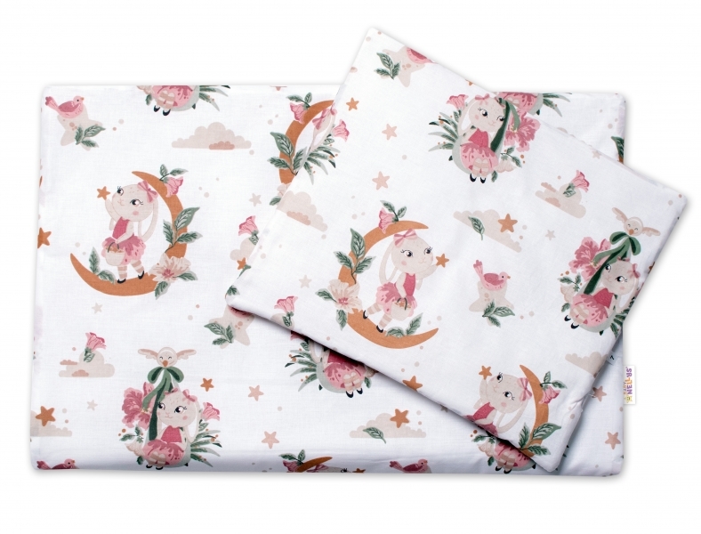Dečka s polštářkem, oboustranné s Minky 55x75cm, 2D, pudrová, Bunny Star, Baby Nellys
