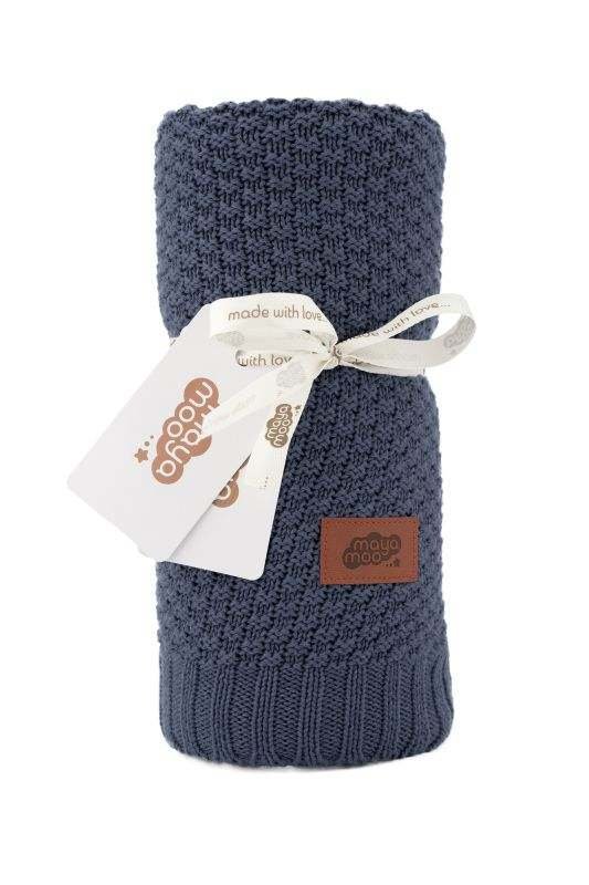 DETEXPOL Pletená deka do kočárku bavlna bambus jeansová Bavlna, Bambus, 80/100 cm