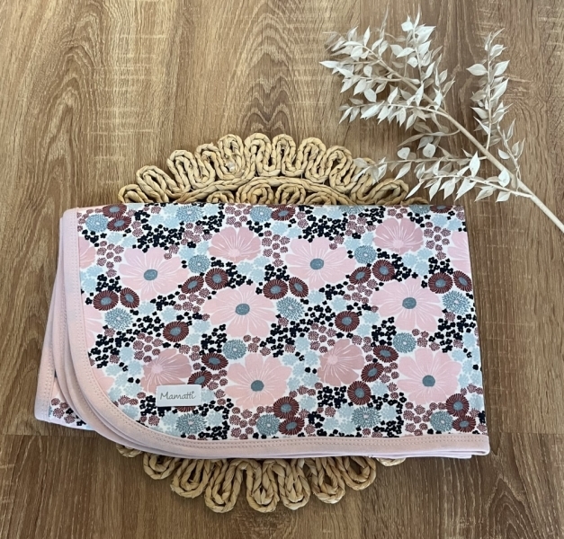 Dětská oboustranná bavlněná deka, Mamatti 80 x 90 cm, Květy, růžová s potiskem
