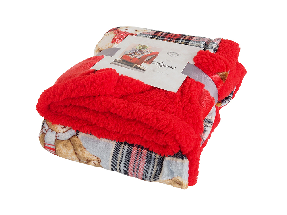 B.E.S. - Petrovice, s.r.o. Deka s beránkem mikroflanel Aspen, dárkové balení - červené káro s medvídky Rozměr: 130x160