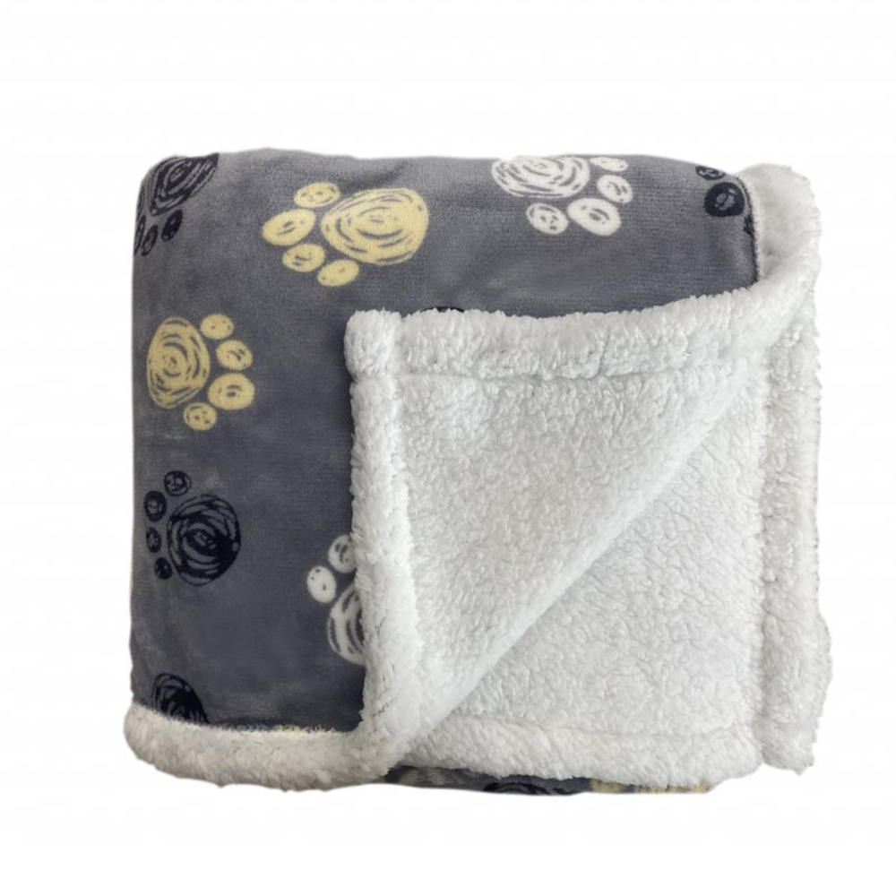 Mikroflanelová deka s beránkem, 150 x 200, vzor tlapky