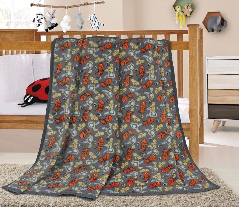 ELLA dětská přikrývka - dinosaurus - šedá - 75x100 cm
