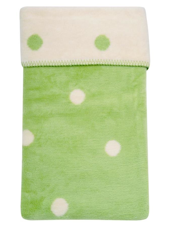 Dětská puntikovaná deka ve veselých barvách. Deka je vyrobena z měkkého a teplého plyše. Rozměry 75x100 cm. Složení 100% bavlna.