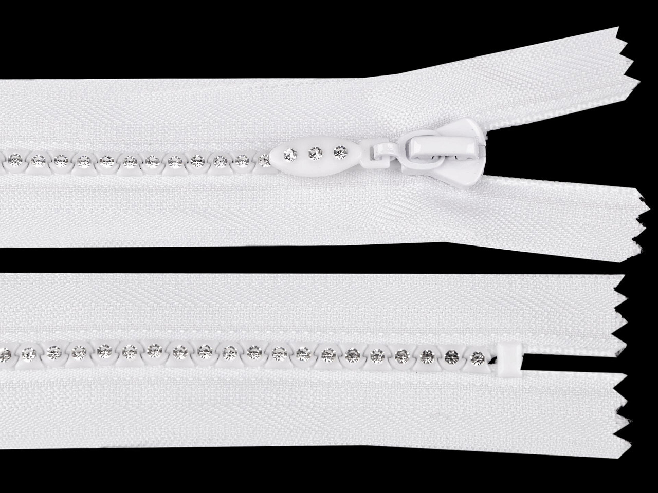 Kostěný zip No 4 délka 30 cm se štrasovými kamínky - 1 ks - 1 bílá