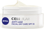 Denní krém pro omlazení pleti **Nivea CELLular Anti-Age Day Cream SPF15**. Obsahuje kyselinu hyaluronovou, kreatin a extrakt z magnolie. Inovativní, rychle se vstřebávající složení při pravidelném používání urychluje regenerační proces pleti. UVA/UVB filtry s OF 15 pomáhají chránit pleť před vznikem vrásek, pigmentových skvrn a poškozením buněk vlivem slunečního záření. **Použití**: Nanášejte každé ráno na důkladně vyčištěnou pleť. Aplikujte malé množství krému na obličej, krk a dekolt a krouživými pohyby jemně vmasírujte směrem nahoru. Vynechejte citlivou oblast kolem očí.