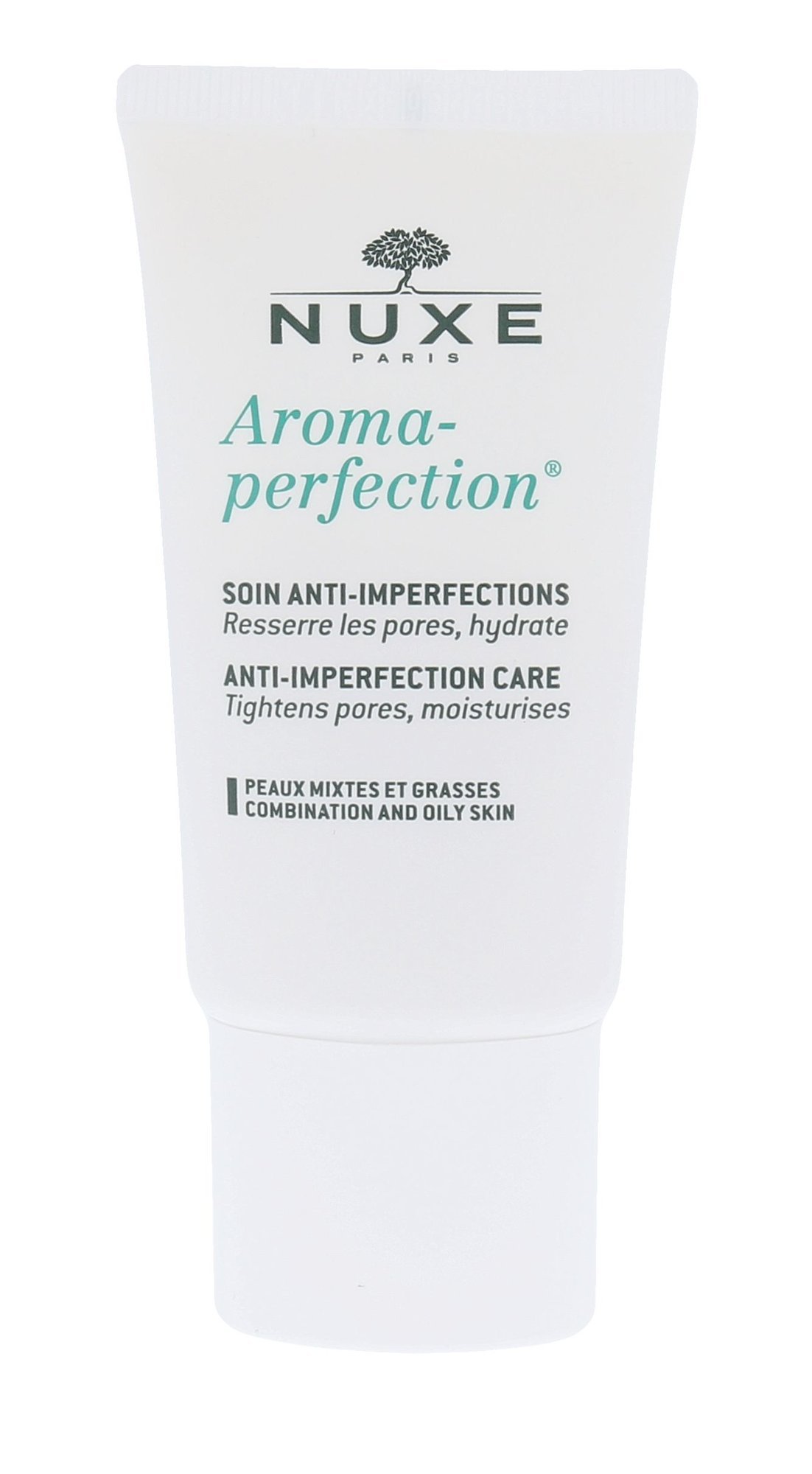 Pleťová péče **Nuxe Aroma-Perfection Anti-Imperfection Care**. Pleťová péče Nuxe Aroma-Perfection Anti-Imperfection Care bojuje proti nedokonalostem. Zmenšuje rozšířené póry a snižuje tvorbu kožního mazu. Zklidňuje pokožku a dodává jí potřebnou hydrataci během celého dne. Lehké složení se snadno nanáší a ihned vstřebává. Vhodné pro smíšenou až mastnou pleť. **Účinky**: · zabraňuje vzniku nedokonalostí · hloubkově pleť hydratuje · snižuje tvorbu kožního mazu. **Použití**: Aplikujte na čistou pleť.