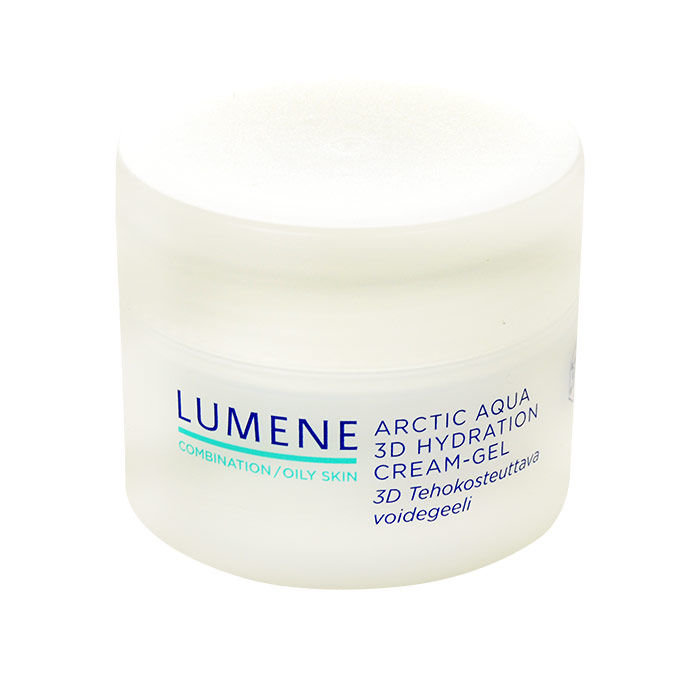 Denní pleťový krém **Lumene Arctic Aqua 3D Hydration Cream-Gel**. Krém Lumene Arctic Aqua 3D Hydration Cream-Gel optimálně pleť hydratuje a vyživuje. Obsahuje hydratační složky, které zabraňují ztrátě vlhkosti. Zanechává pleť svěží, jemnou a hydratovanou. Vhodné pro mastnou a smíšenou pleť. **Použití**: Aplikujte na čistou pleť.