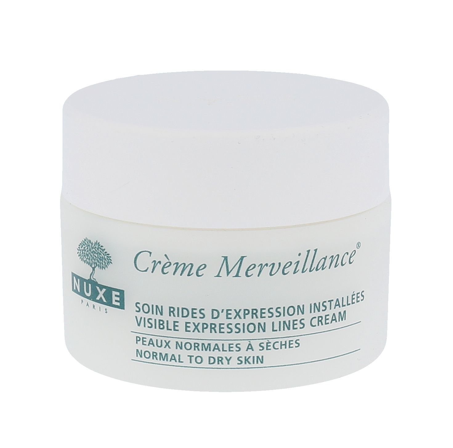 Pleťový krém **Nuxe Merveillance Visible Lines Cream Normal Dry Skin**. Pleťový krém Nuxe Merveillance Visible Lines Cream Normal Dry Skin intenzivně bojuje proti mimickým vráskám. Zjemňuje pleť a dodává jí potřebnou hydrataci. Ideální pleťová péče pro normální až suchou pleť. **Použití**:...